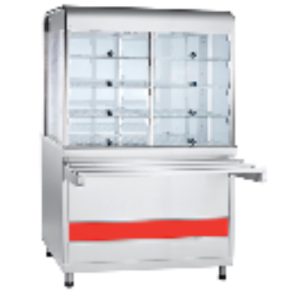 Плавная регулировка температуры 1…10°С. Хладагент: R404A. Внутренний объем закрытой витрины имеет принудительную циркуляцию охлажденного воздуха и 6 ламп подсветки. Демонстрационная площадь ровной охлаждаемой столешницы 0,57 м², полкок: 1,55 м², полезный объем витрины 0,5 м³. Внизу — открытый нейтральный шкаф. Регулируемые по высоте ножки, полки и направляющие для подносов входят в комплект поставки.